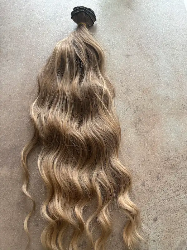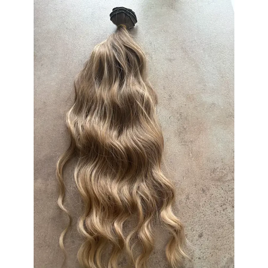 8-as szőke-szőke hullámos vasalható I. osztályú csatos, szintetikus haj 55cm (56)
