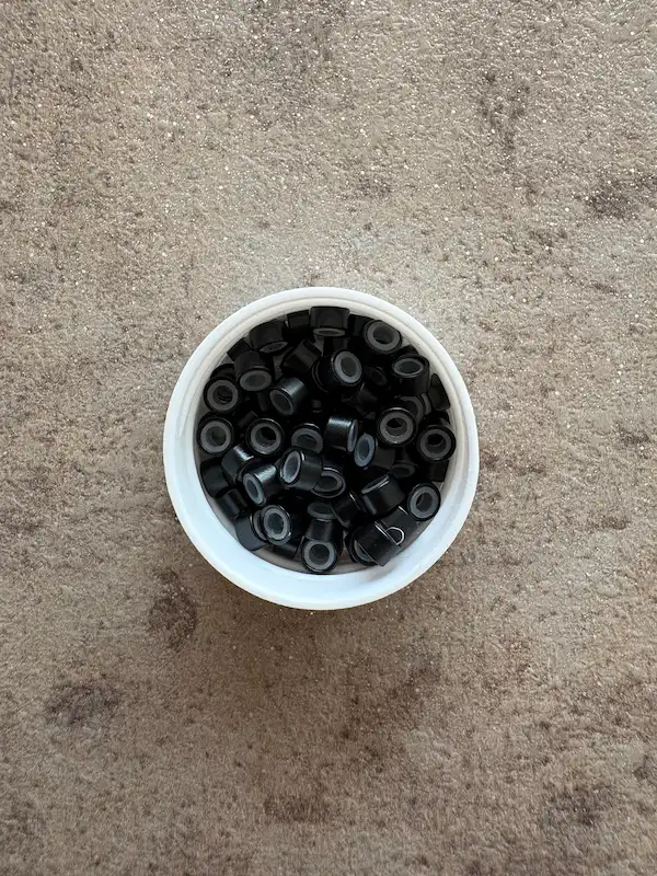 AKCIÓS! Fekete szilikonos mikrógyűrű 100db/5mm FEHÉR SZILIKONNAL (1#)