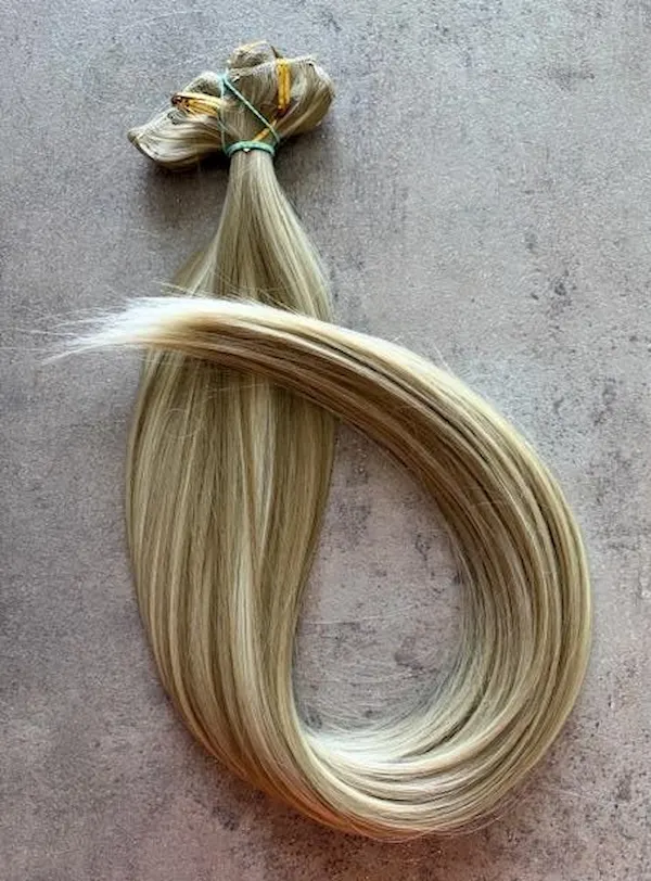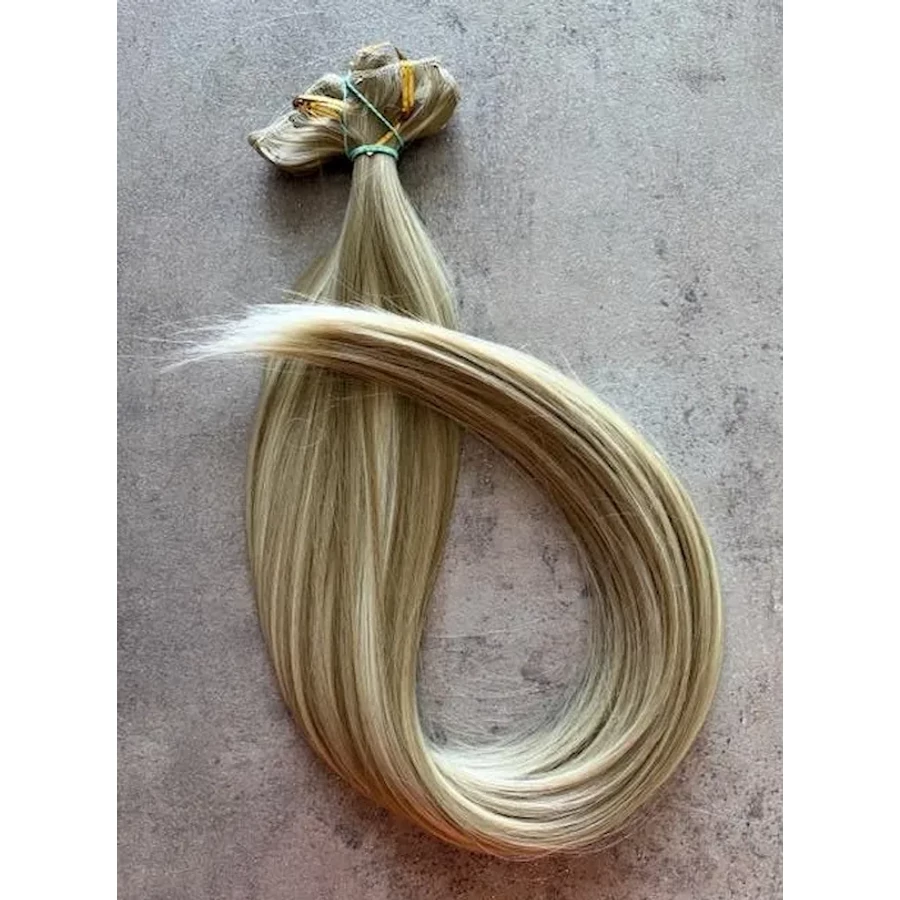 Karamell-szőke melíros egyenes vasalható I. osztályú csatos 55cm szintetikus haj (15)