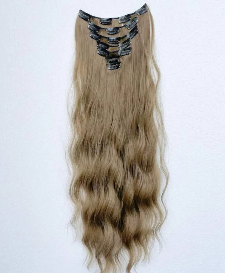 Hamvas 8-as színű vasalható I. osztályú csatos, szintetikus haj 55 cm (30)