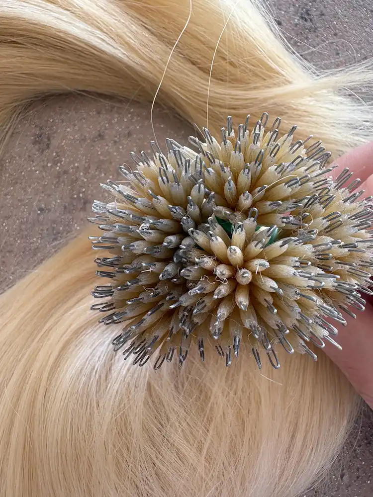 Termékleírás: Nano gyűrűre tincsezett festett bézs szőke póthaj, 40 cm hosszúságban, 100% eredeti emberi hajból készült. A póthaj keratinozott, így tartós és természetes megjelenést biztosít. Az 1. osztályú minőség garantálja a hosszú élettartamot és a könnyű kezelhetőséget. A termék kb. 10 gramm súlyú, ami körülbelül 10-15 tincset jelent, ideális mennyiség nano gyűrűs hajhosszabbításhoz. Minimális árnyalatnyi eltérések előfordulhatnak a képekhez képest, hiszen a természetes hajszín variációk mindig jelen vannak. A festett haj további kezelésével kapcsolatban kérjük, forduljon szakemberhez a legjobb eredmény érdekében.