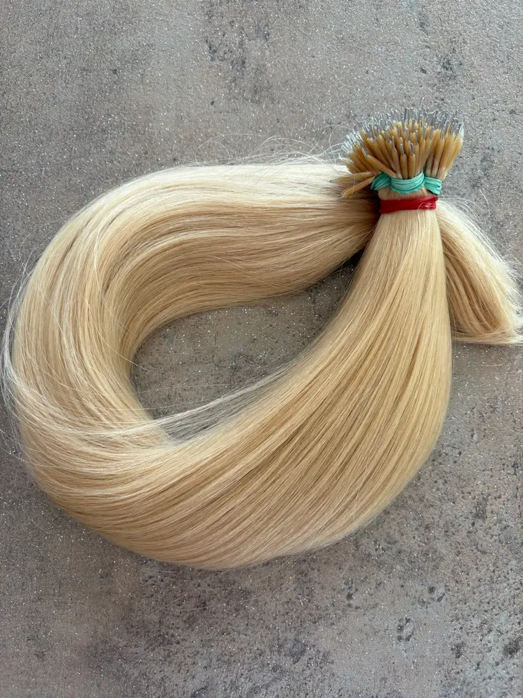 I. OSZTÁLYÚ, EREDETI EMBERI nano gyűrűhöz tincsezett, keratinozott PÓTHAJ.