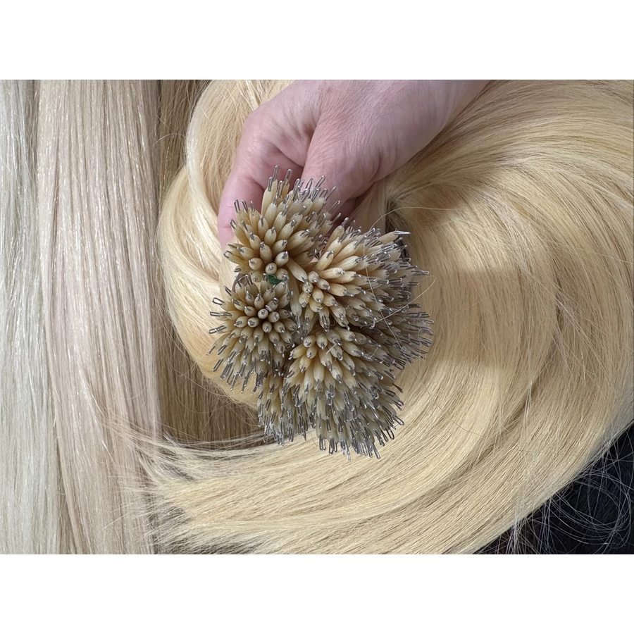 Termékleírás: Nano gyűrűre tincsezett platina szőke hajhosszabbítás, 60-63 cm hosszúságban, 100% eredeti emberi hajból készült. A termék kiváló minőségű platina szőke árnyalatban érhető el, amely természetes fényt és ragyogást biztosít a hajnak. A tincsek nano gyűrűs technológiával vannak rögzítve, ami kényelmes, tartós és a haj természetes növekedését nem zavarja. Egy csomagban 1 gramm tincset talál, amely ideális kisebb korrekciókhoz vagy a haj volumenének növeléséhez. Könnyen kezelhető, festhető és formázható, így tökéletes választás azok számára, akik természetes hatású hajhosszabbítást keresnek.