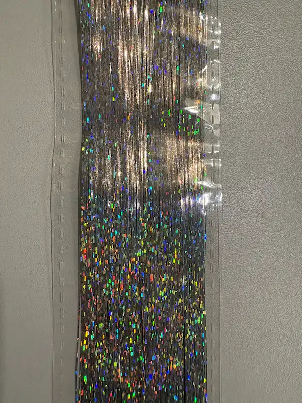 Glitter szál hajba, ezüst színű csillámos dísz hajfonáshoz